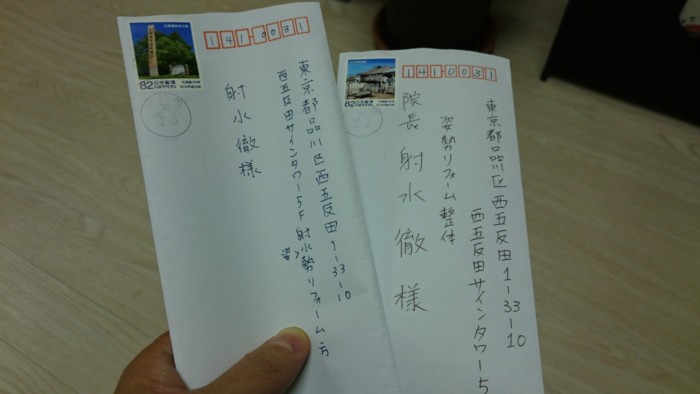 香織先生と、妻から手紙が届いておりました。